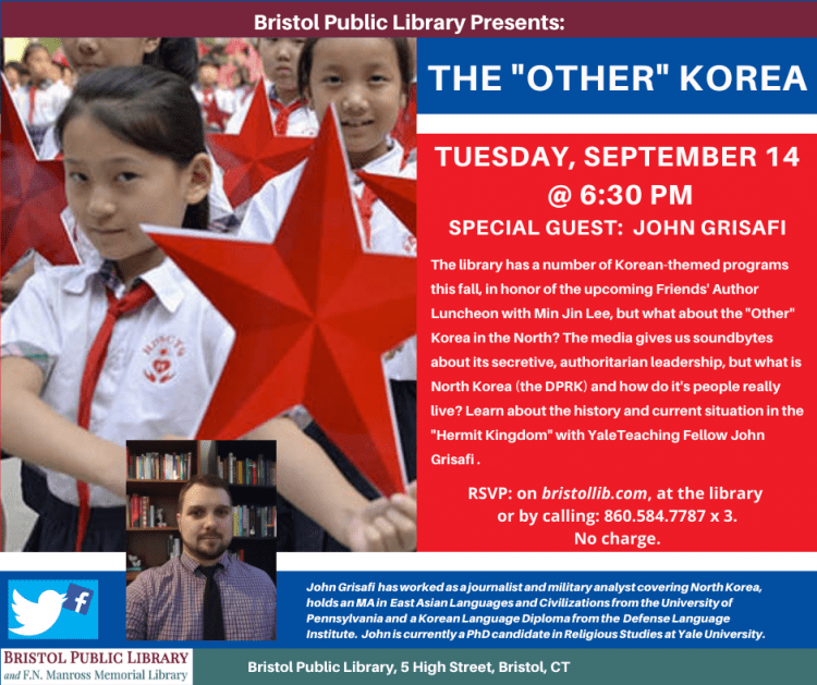 Further details on the Bristol Public Library website: https://www.bristollib.com/events/event/the-other-korea/