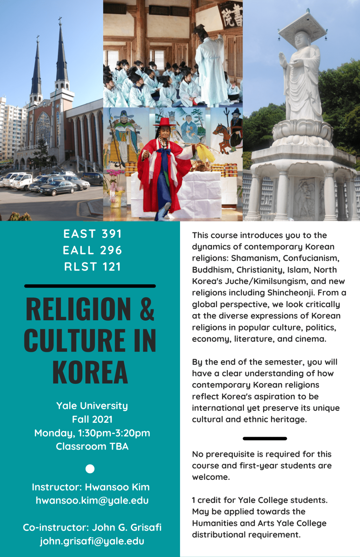 “Religion and Culture in Korea,” with Hwansoo Kim, Yale University, Fall 2021 – View the course flyer